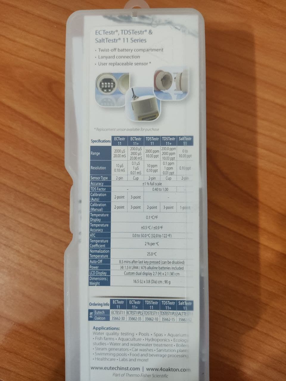 Waterproof ECTestr 11+ TDSTestr/Salt Tester OAKTONMade in SingaporeItem is new, original and not used before.Waterproof ECTestrsEUTECH INSTRUMENTS